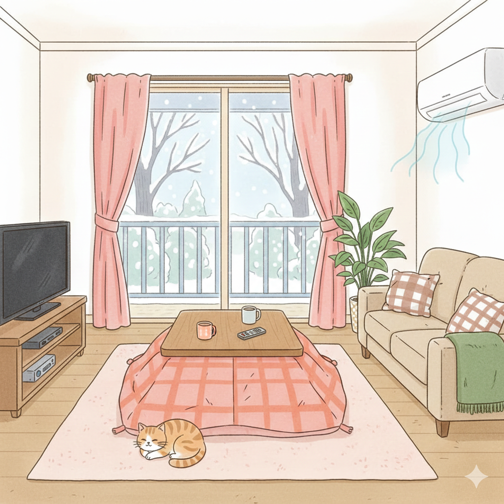 - エアコンとこたつを目的別に使い分ける